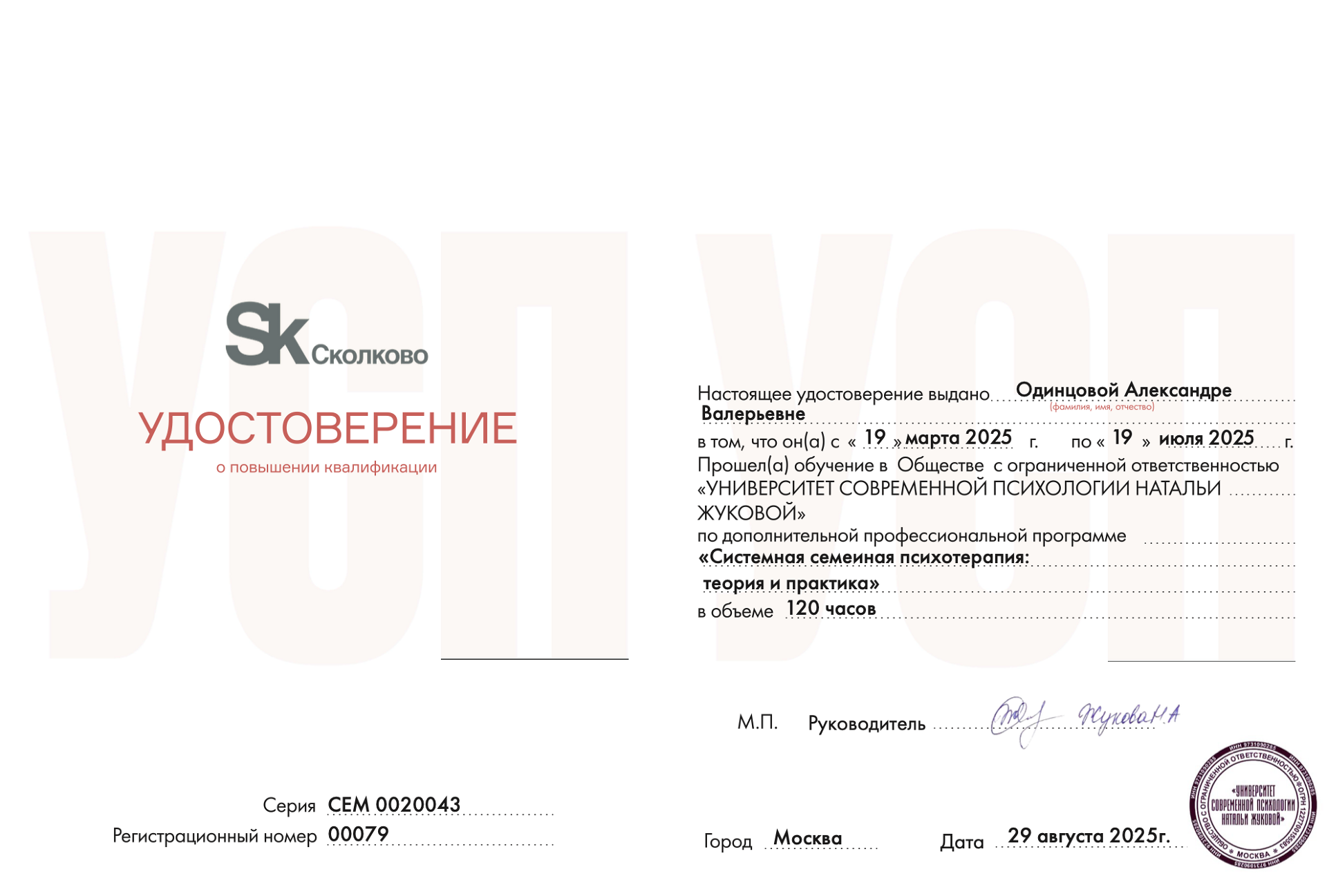 2025 «Системная семейная психотерапия» (Университет современной психологии)