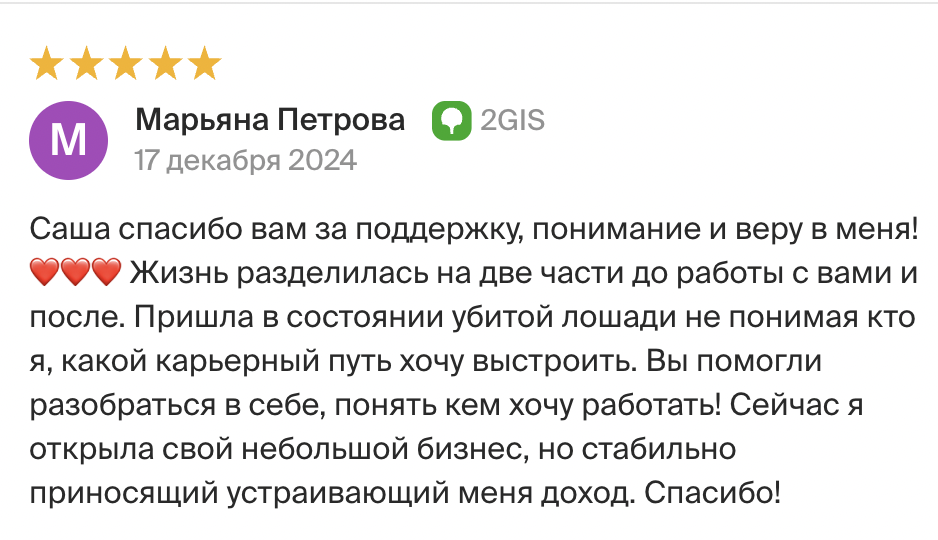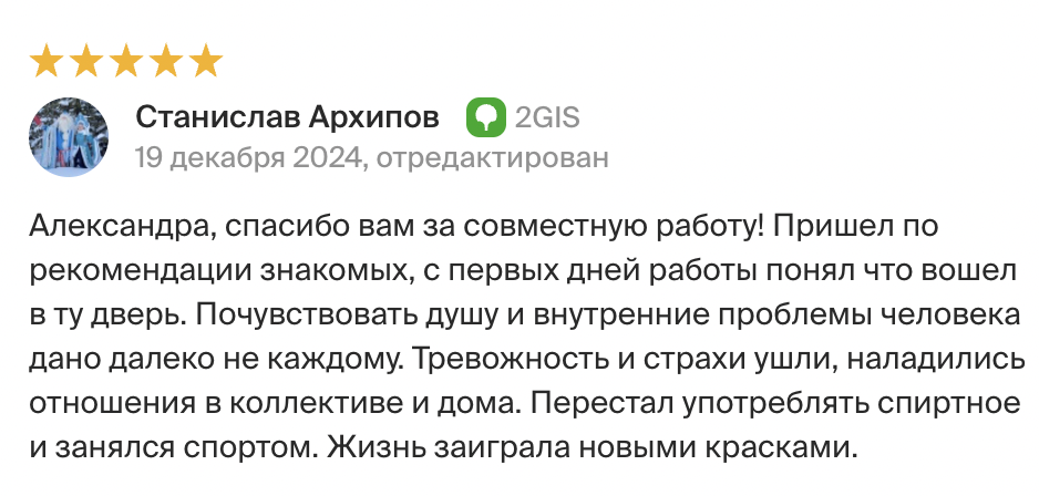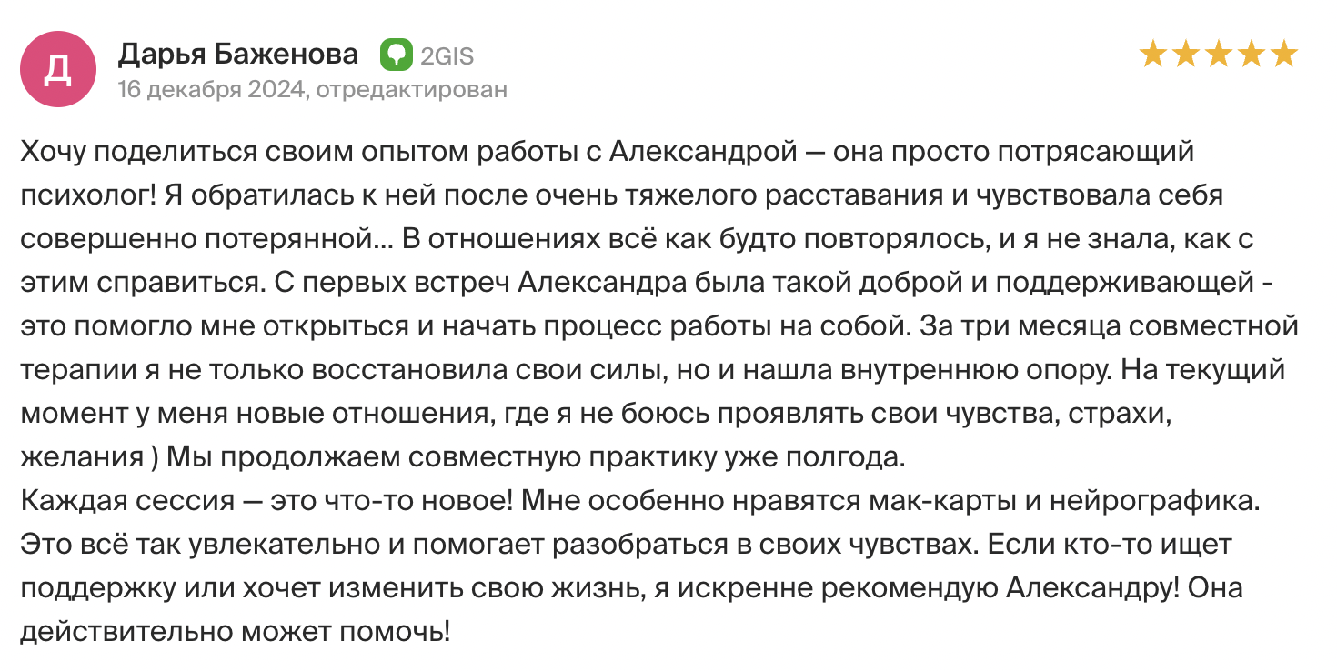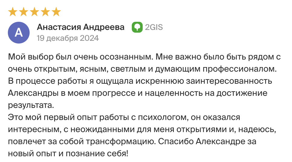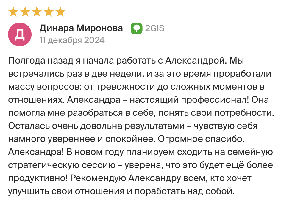 Длительность терапии зависит от ваших целей и ситуации. У некоторых клиентов процесс занимает 1,5-2 года, другим достаточно 10-20 встреч.