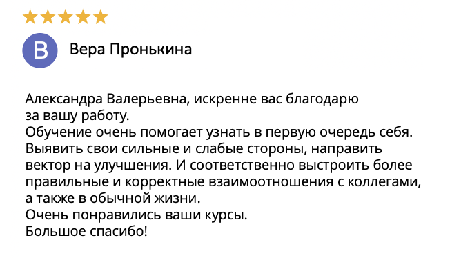 Помимо индивидуального консультирования - я провожу командный коучинг, трекинг, тренинги SOFT SKILLS, стратегические сессии и тимбилинги для компаний. Помогаю развивать управленческие компетенции, готовлю руководителей для подготовки стратегий, выступлений перед органами власти и инвесторами.