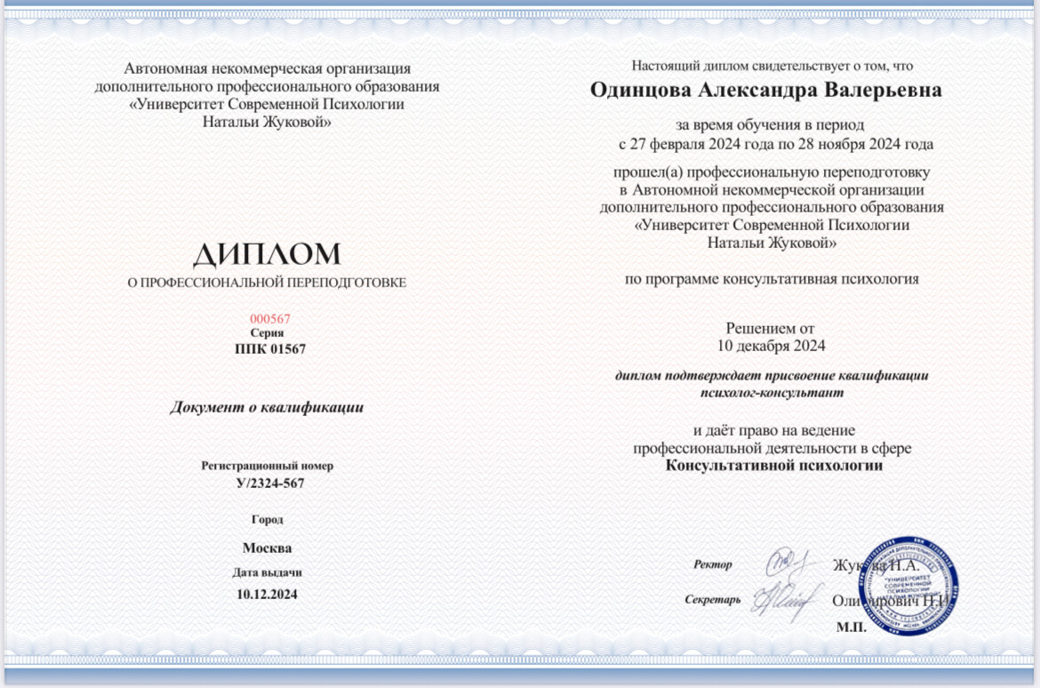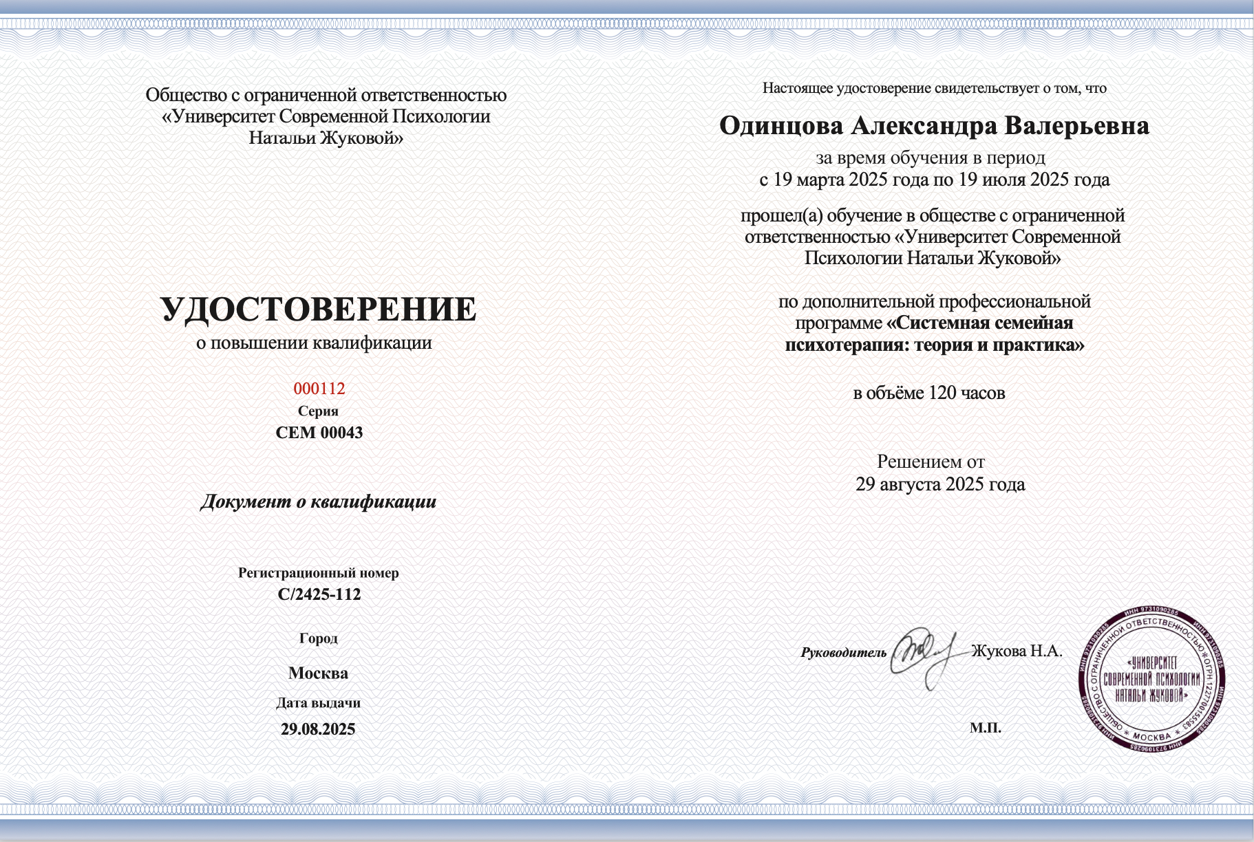 2025 «Системная семейная психотерапия» (Университет современной психологии)